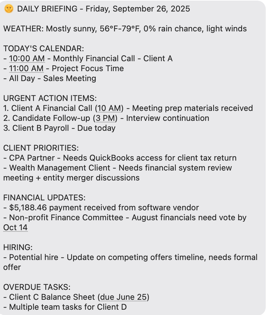 It will send me daily summaries of calendar, emails, weather, etc each morning.